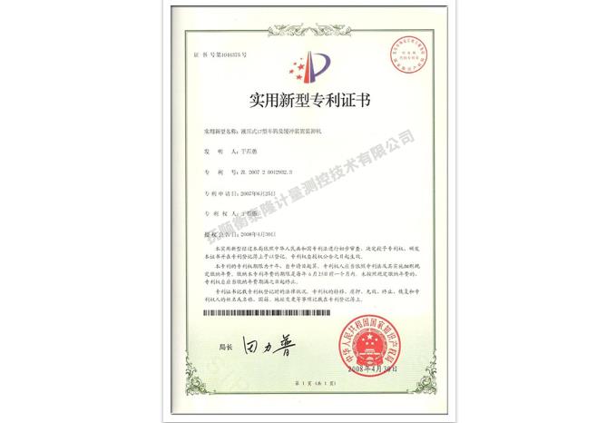 现车钩缓装卸机专利证书