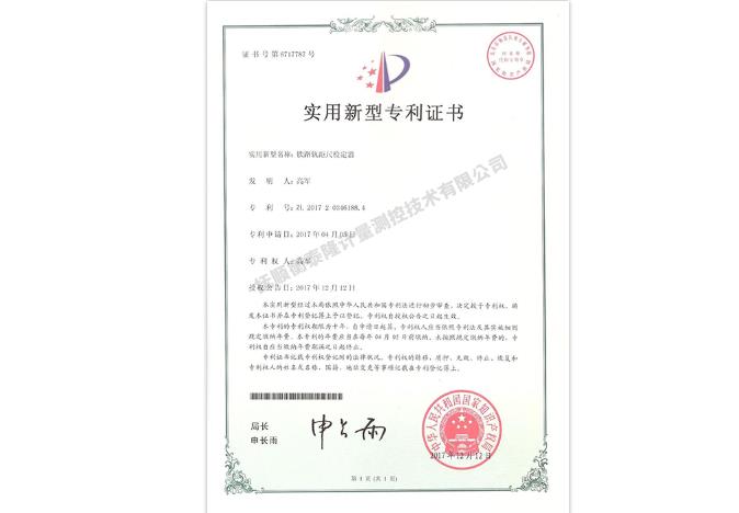 轨距尺检定器专利证书