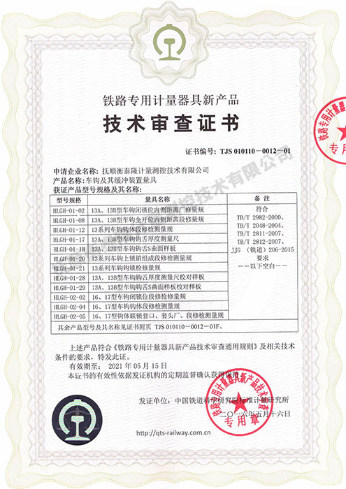 车钩及其缓冲装置量具 技术审查证书